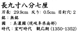Длина клинка (Hacho): 29.9 см (0.99 Shaku),