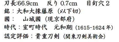 - Омотэ-мей 表銘: Yamato Daijo Fujiwara (Kirijiri nakago