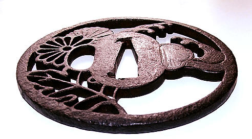 Цуба в форме маругата, прорезная, железо, ковка. На цубе изображением